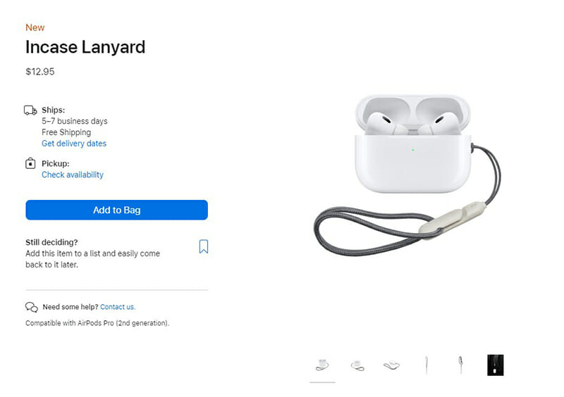 Trong sự kiện Far Out diễn ra vào ngày ngày 23/9 vừa qua, bên cạnh những iPhone 14 series, Apple Watch mới và AirPods Pro 2, Apple còn giới thiệu phụ kiện Incase Lanyard. Được biết, đây chính là dây bện để hỗ trợ cho mẫu AirPods Pro 2 và nó có giá bán lên tới 12.95 USD (~ 304.000 đồng).