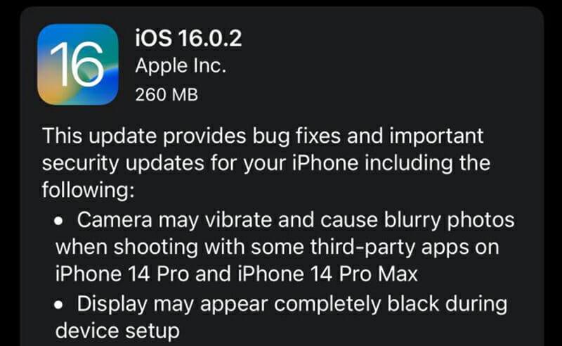 Bản cập nhật iOS 16.0.2 được phát hành sớm như vậy chính là để sửa hai lỗi trên. Theo như ghi chú phát hành của Apple, bản cập nhật mới cũng như sửa các lỗi liên quan đến VoiceOver và những sự cố hiển thị ảnh hưởng đến một số mẫu iPhone.