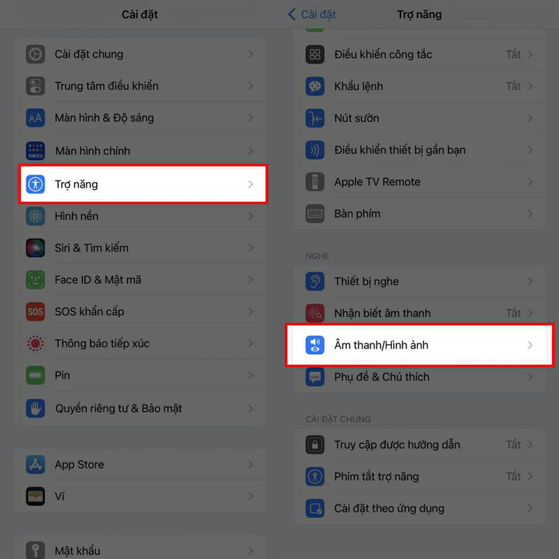 Bước 1: Tính năng này sẽ giúp cho người dùng có thể tối ưu thời gian hơn để làm việc khác trong khi iPhone được khởi động lại. Người dùng sẽ biết được thiết bị của mình được tắt/mở nguồn bằng âm thanh mà không cần phải nhìn và theo dõi điện thoại liên tục nữa. Để bật hay tắt âm thanh khi mở/tắt nguồn trên iPhone 14 series thì đầu tiên người dùng hãy truy cập vào Cài đặt > Trợ năng > Âm thanh/Hình ảnh.