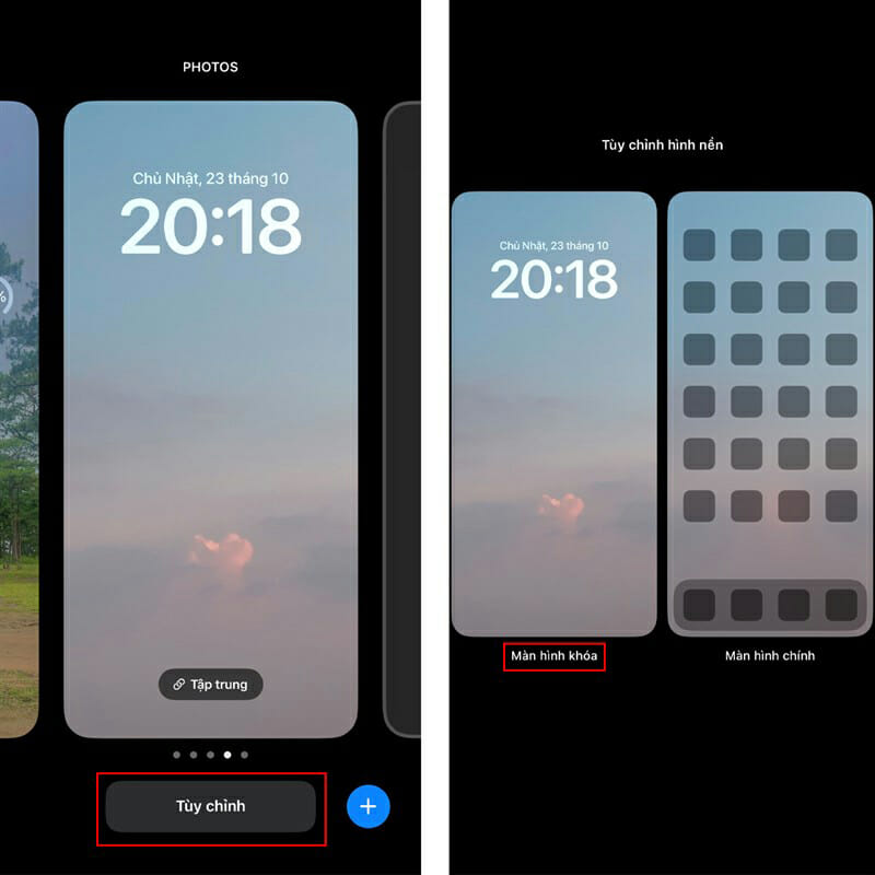 Bước 1: Đầu tiên người dùng hãy nhấn giữ màn hình khóa chọn Tùy chỉnh > Tiếp tục chọn vào Màn hình khóa để thực hiện những thao tác tùy chỉnh màn hình.