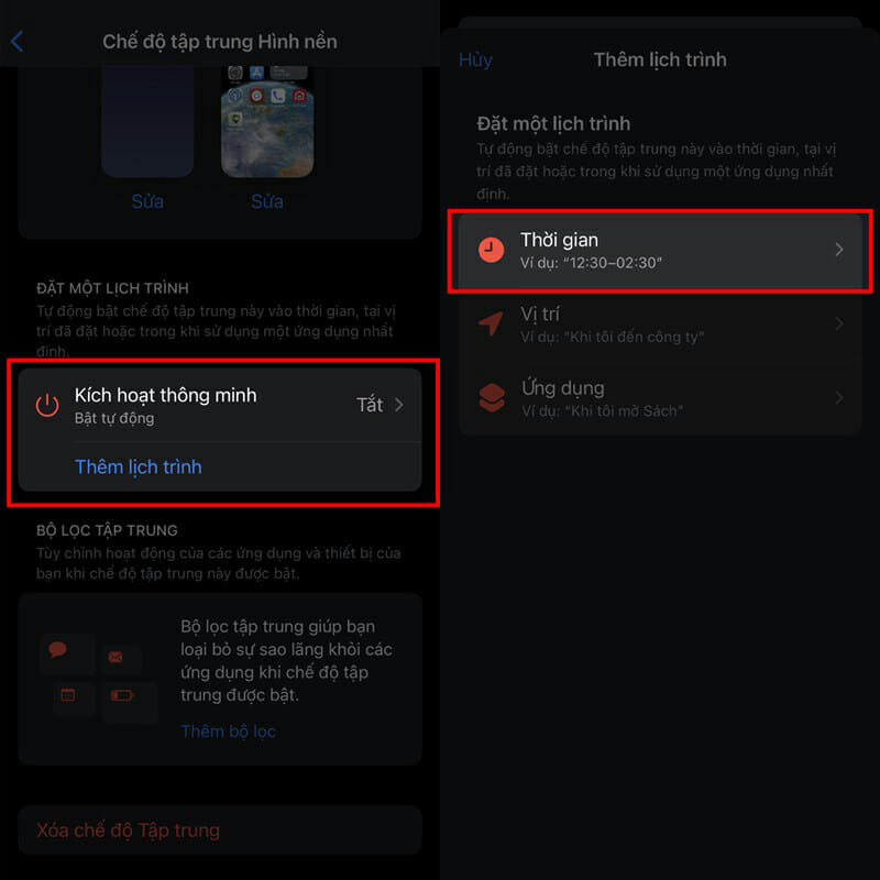 Bước 5: Cuối cùng, hãy ấn tiếp vào Thêm lịch trình ở mục Đặt một lịch trình. Sau đó là bấm tiếp mục Thời gian rồi điều chỉnh khoảng thời gian mà người dùng muốn đặt màn hình này cho điện thoại.