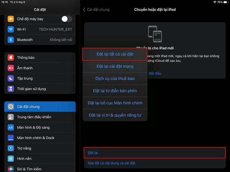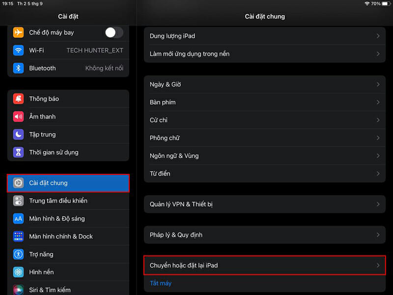 Bước 1: Người dùng hãy vào Cài đặt > Cài đặt chung > Chuyển hoặc đặt lại iPad.