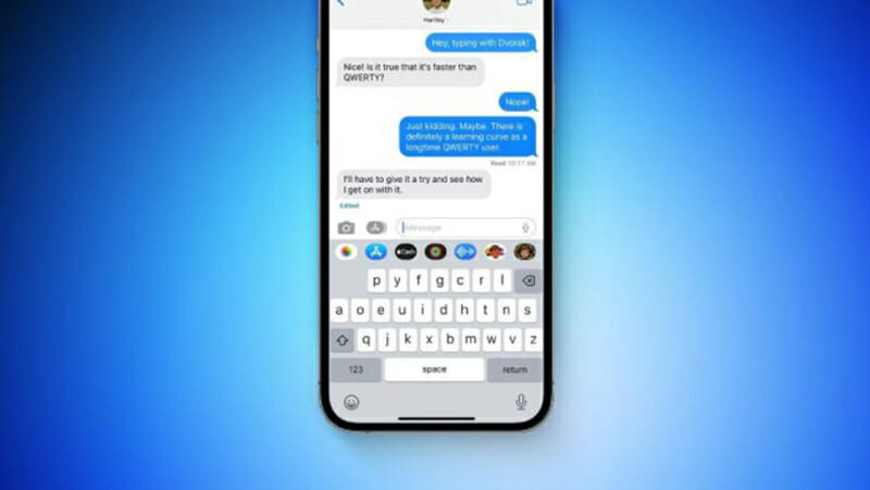 Bản cập nhật iOS 16 bổ sung hỗ trợ cho bố cục bàn phím Dvorak trên iPhone, nó giúp cho người dùng một giải pháp thay thế cho bố cục QWERTY tiêu chuẩn.