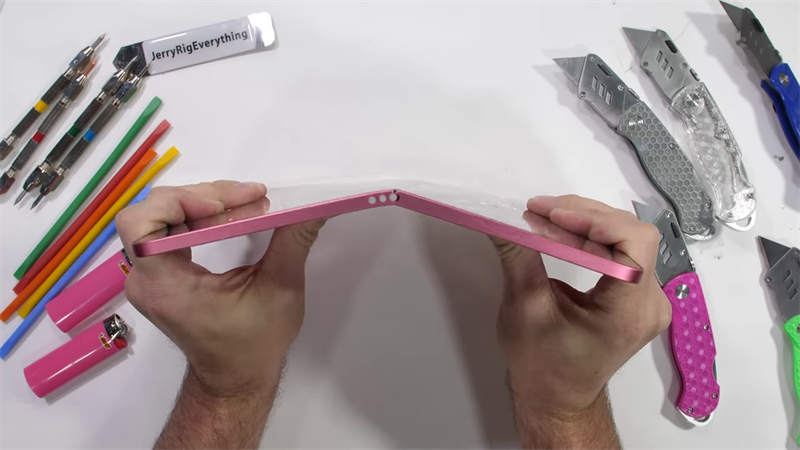 Anh cũng cho biết vì cạnh thiết bị có thiết kế 3 đầu kết nối phụ kiện, khiến cho khu vực này bị yếu đi về độ bền. Tuy nhiên nhìn chung JerryRigEverything vẫn đánh giá cao tổng thể máy, trường hợp mà mà mẫu iPad bị bẻ cong hoàn toàn cũng hiếm.